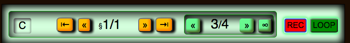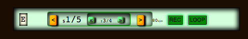 | Beat | One display of notes within a Section. At every beat change, you can change SingleNotes, TinyNotes, and Highlights, but you don't have to. To change these on each Beat, record (press "Rec"), then click the notes you want, then change to the next Beat with the Transport or keyboard shortcut without changing Section. When done, turn off recording. You can then Loop Beats, or Loop the Song, to see your work. You can place notes while looping, but you gotta be fast, or set the BPM to be slow, while editing. A Beat is associated with the BPM (Beat Per Minute). So at 80 BPM, you'll get 80 beats in one minute. If you had 8 beats to Section 1, and 8 beats to Section 2, looping over these two Sections would yeild 5 loops in one minute. Each Section may have different number of Beats. If you are matching a song in 4/4 at 80 BPM, then put 4 Beats in each Section. If you want to show fingering on the 1/8th note, put 8 Beats per Section, and set BPM to 160. |