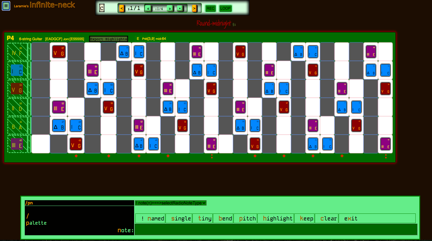 This tool, infinite-neck, helps you visualize notes across the neck of your instrument.