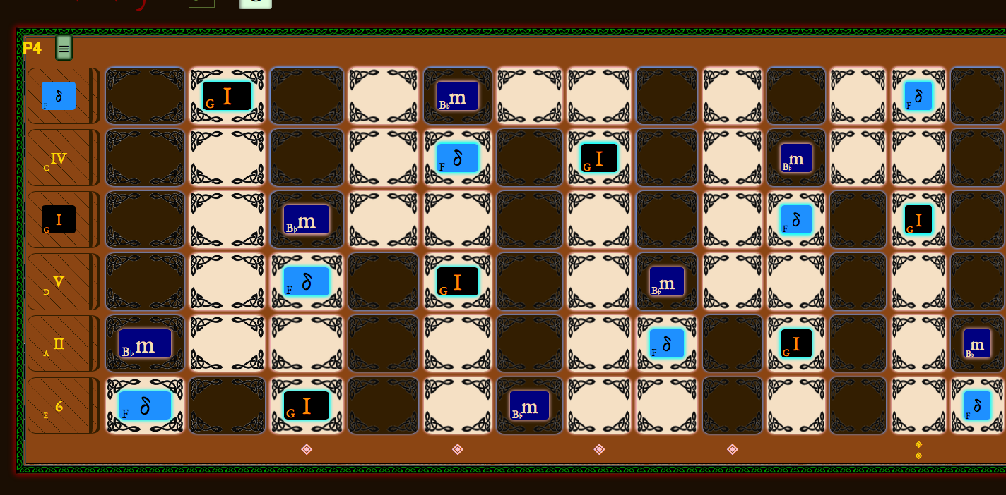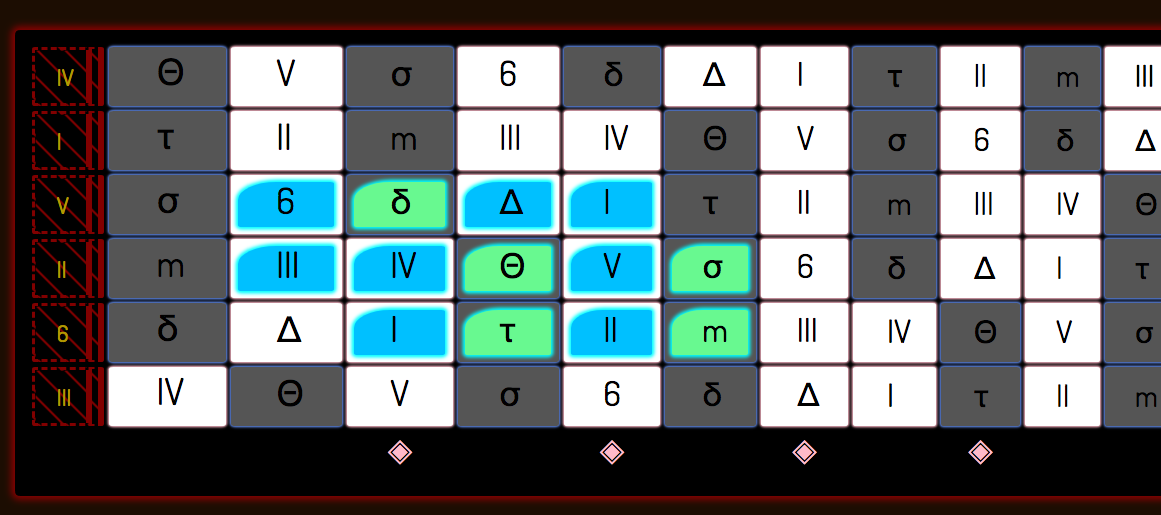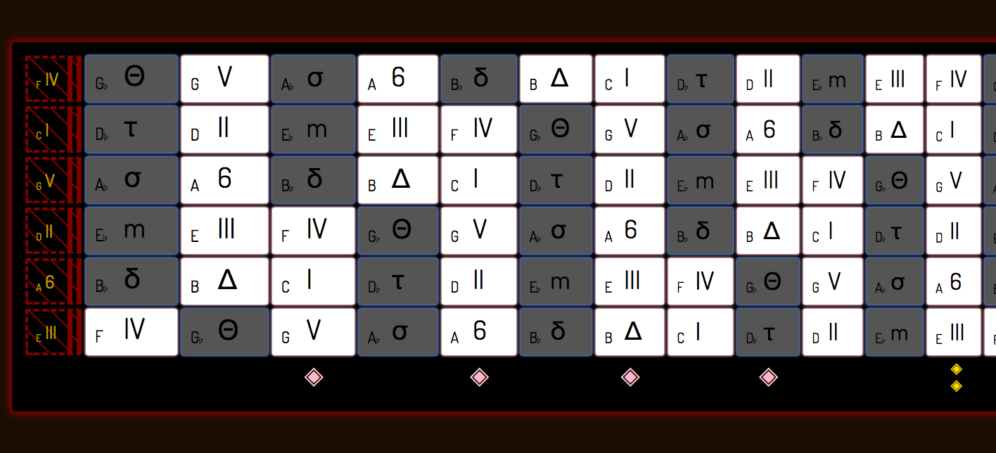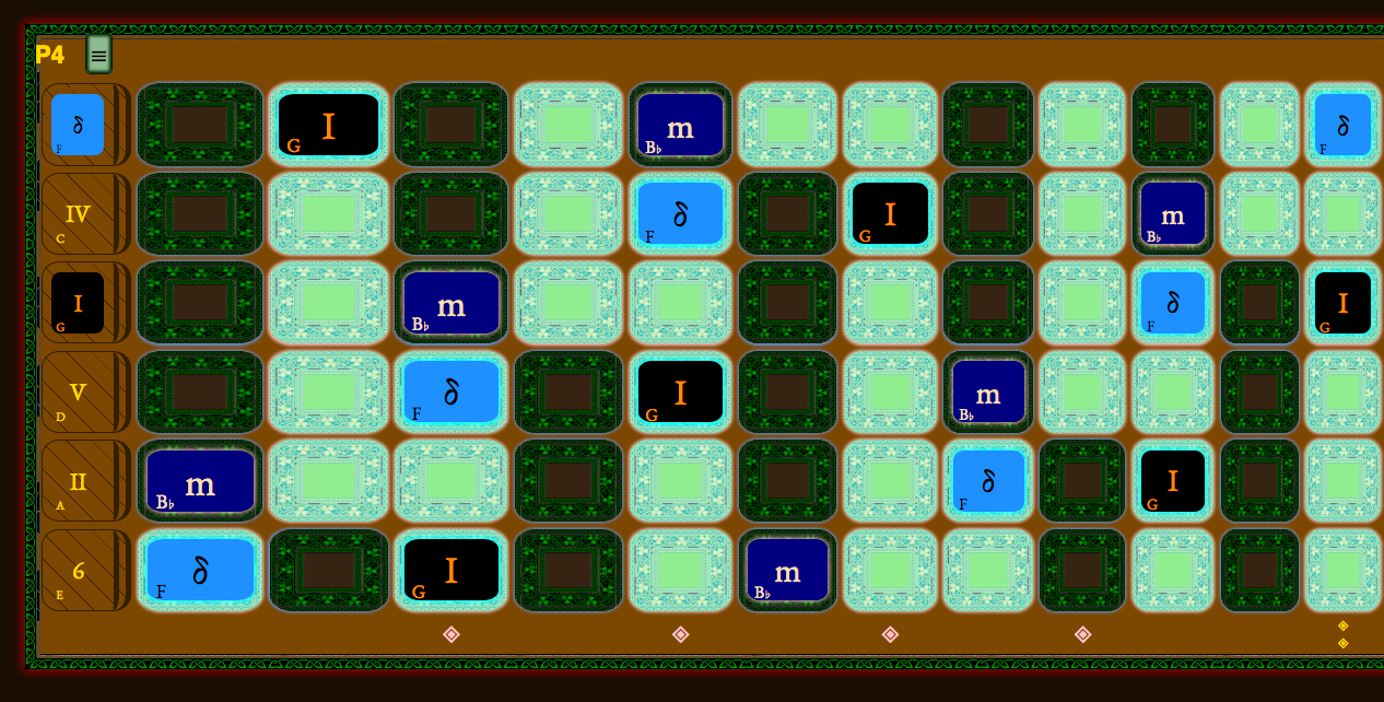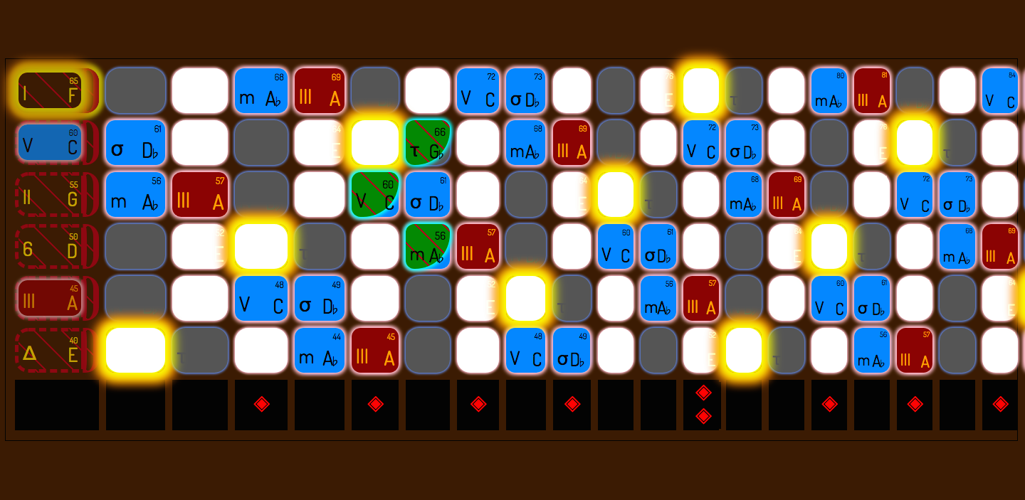 With four beats in one Section, the neck would look like, say, a sea of bluish notes with several notes highlighted in golden backlight.