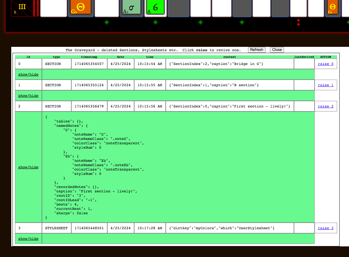 section :: noteTables - a dictionary of arrays that store all played notes in that Section